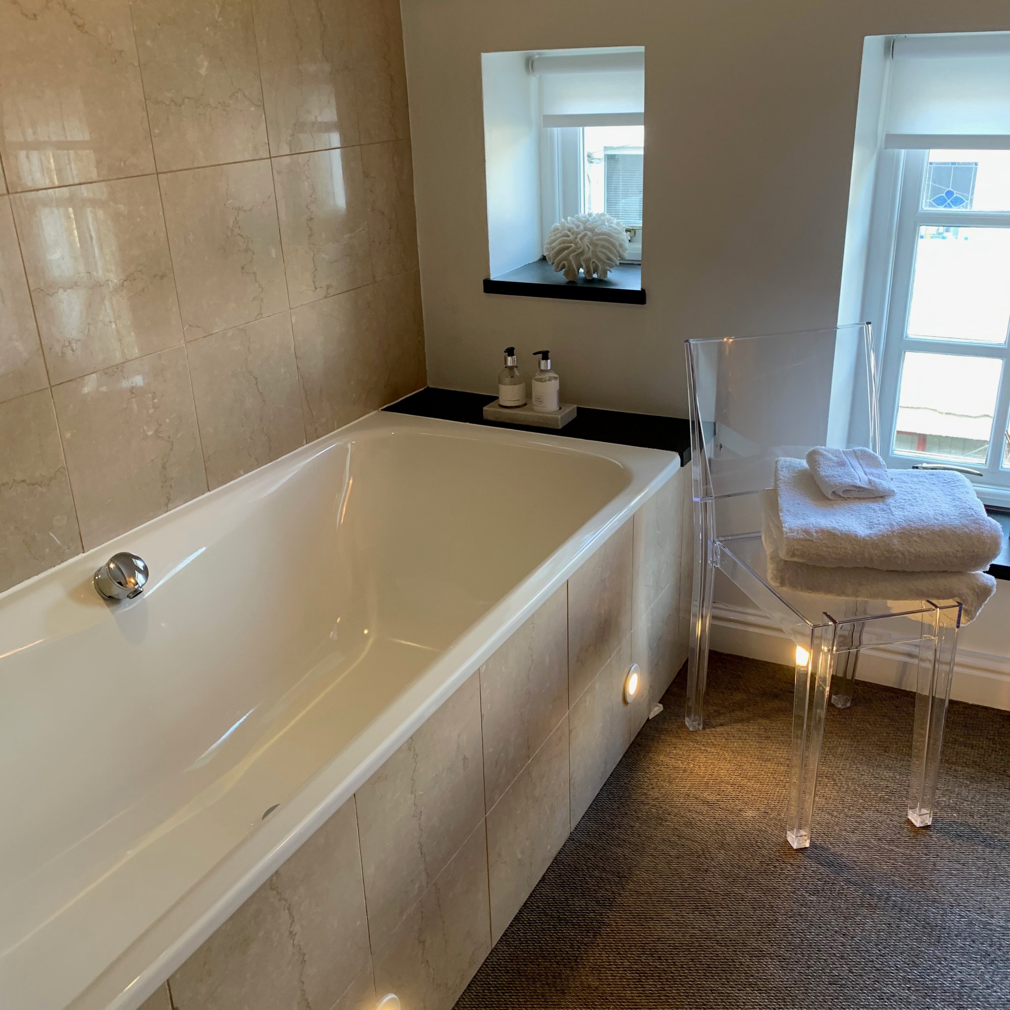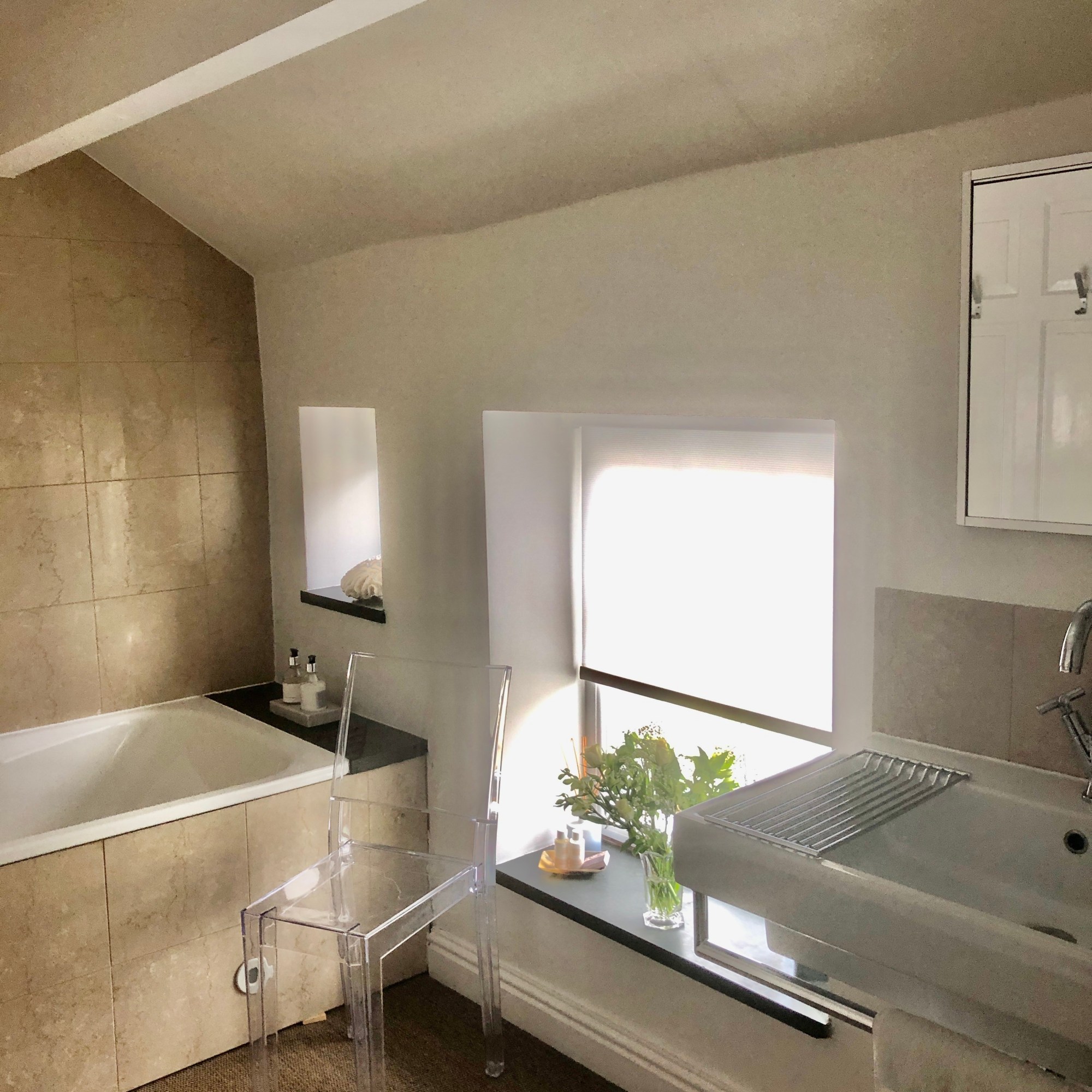 The bathroom, located on the top floor, is ultra-modern with an enormous bath and separate rain shower.